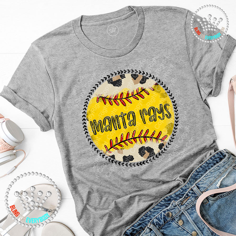 Manta Rays Softball Background Graphic Print Unisex Short Sleeve Tee #29632
