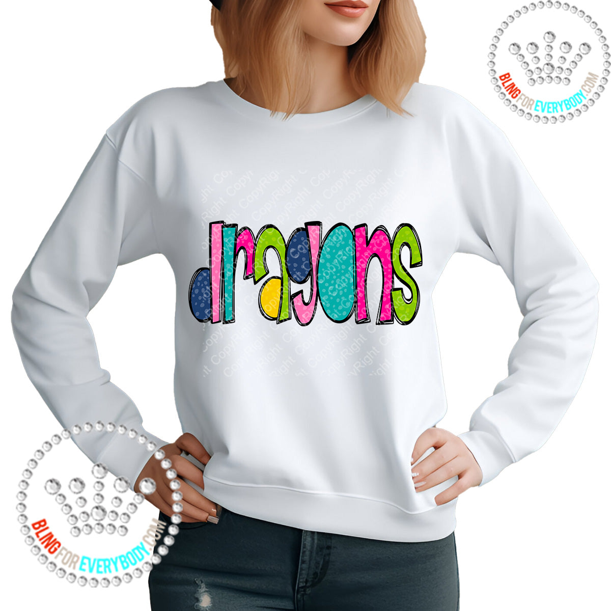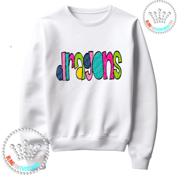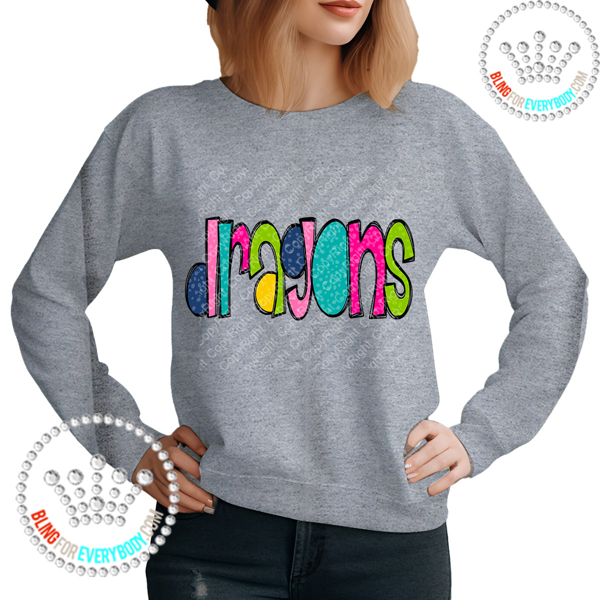 Dragons_Preppy_Sketchy Graphic Print Unisex Long Sleeve Tee #26077