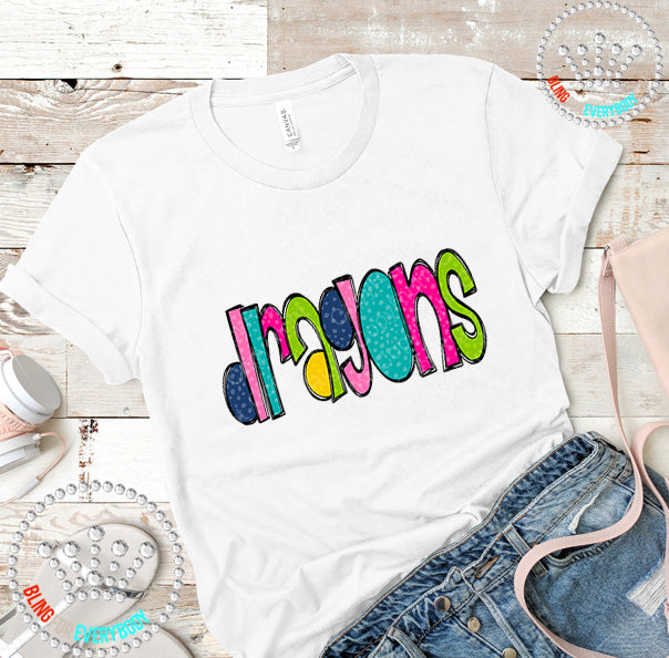 Dragons_Preppy_Sketchy Graphic Print Unisex Short Sleeve Tee #26077