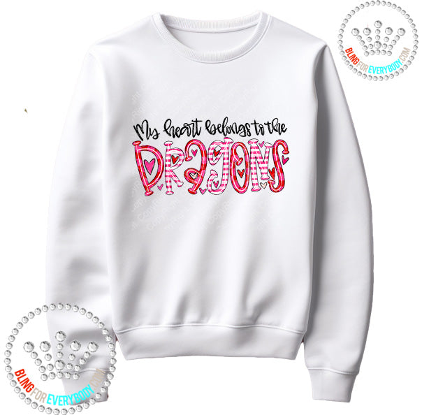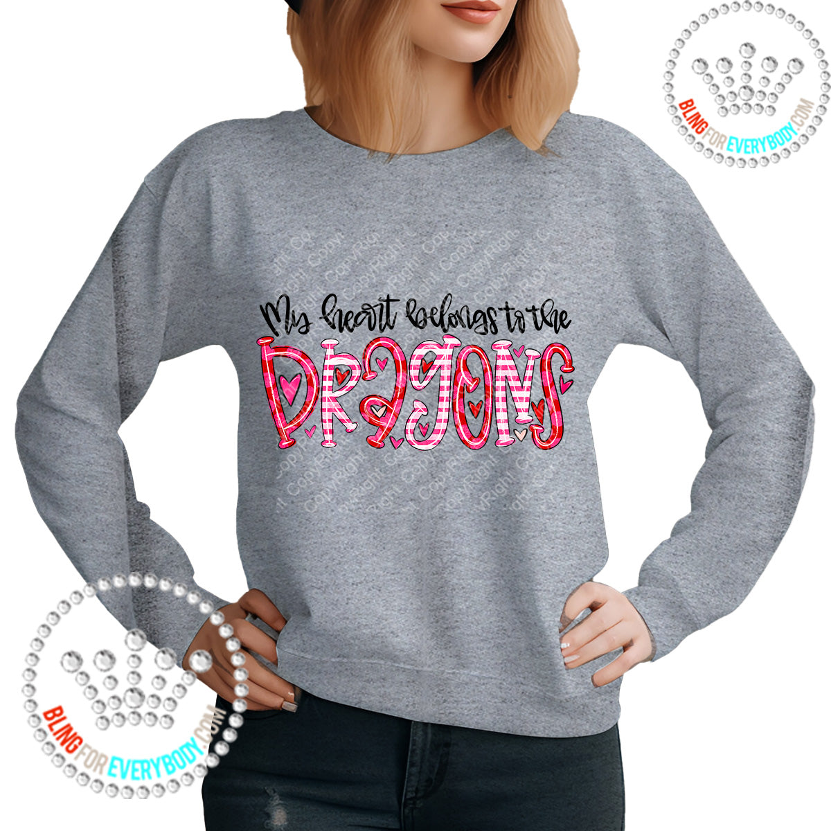 My Heart Belongs To The Dragons Valentine Scribble Graphic Print Unisex Long Sleeve Tee #26139