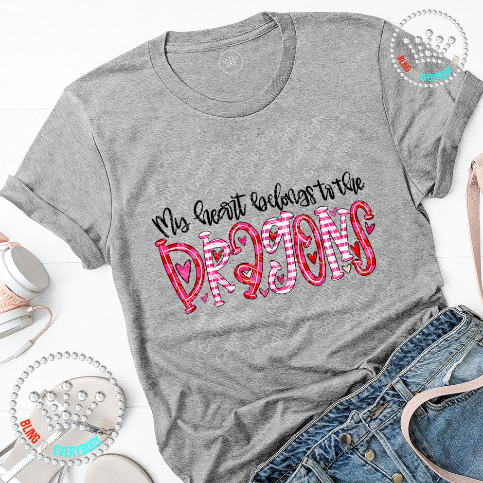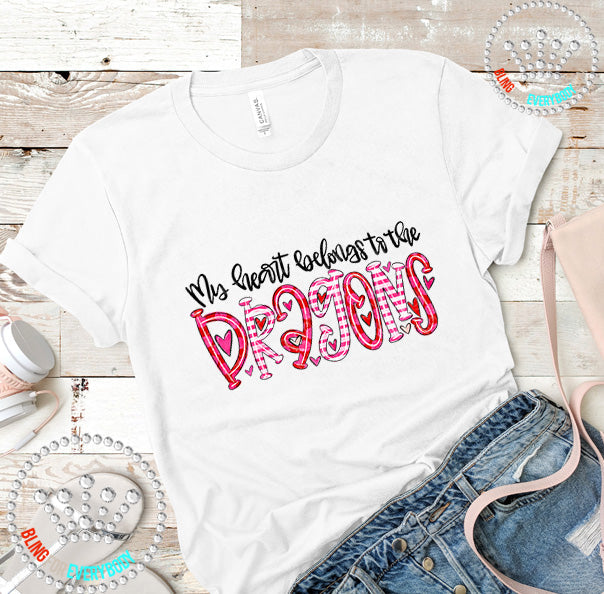 My Heart Belongs To The Dragons Valentine Scribble Graphic Print Unisex Short Sleeve Tee #26139