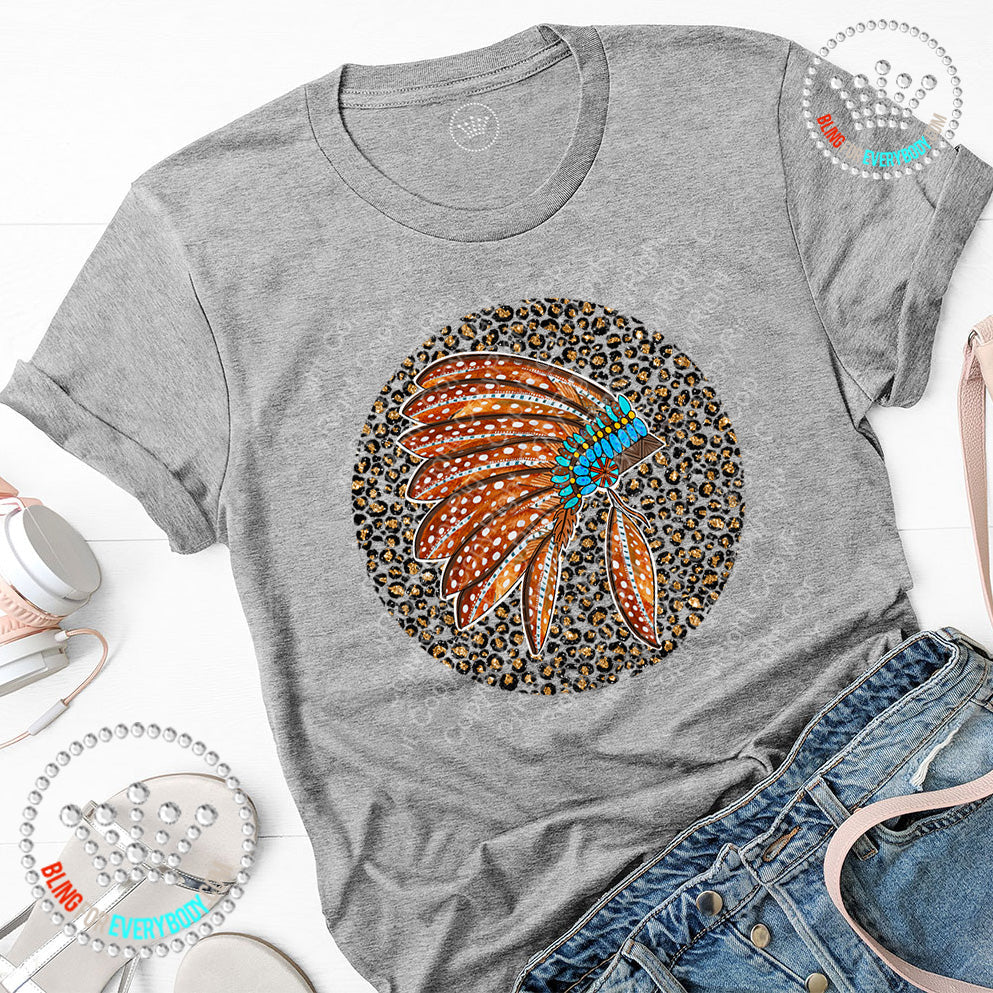Indian Headdress Cheetah Leopard Graphic Print Unisex Short Sleeve Tee #26123