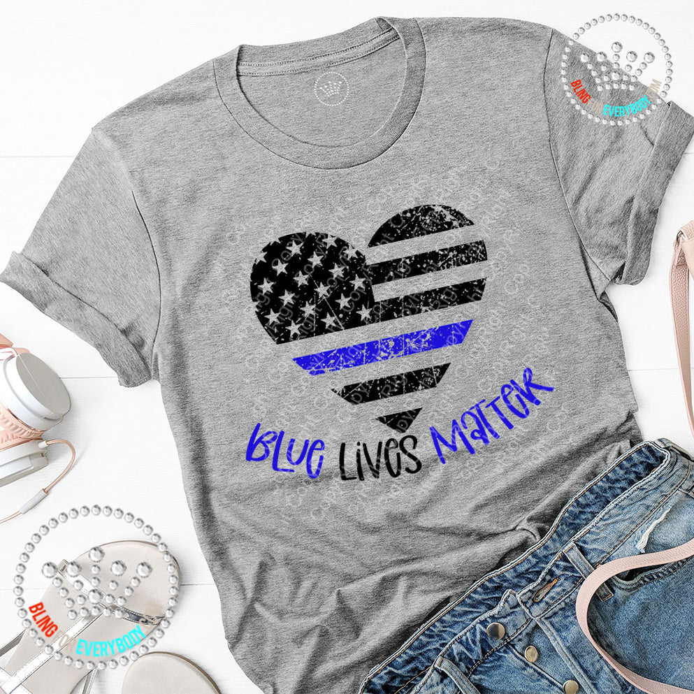 Blue Line Heart Blue Lives Matter Graphic Print Unisex Short Sleeve Tee #26100