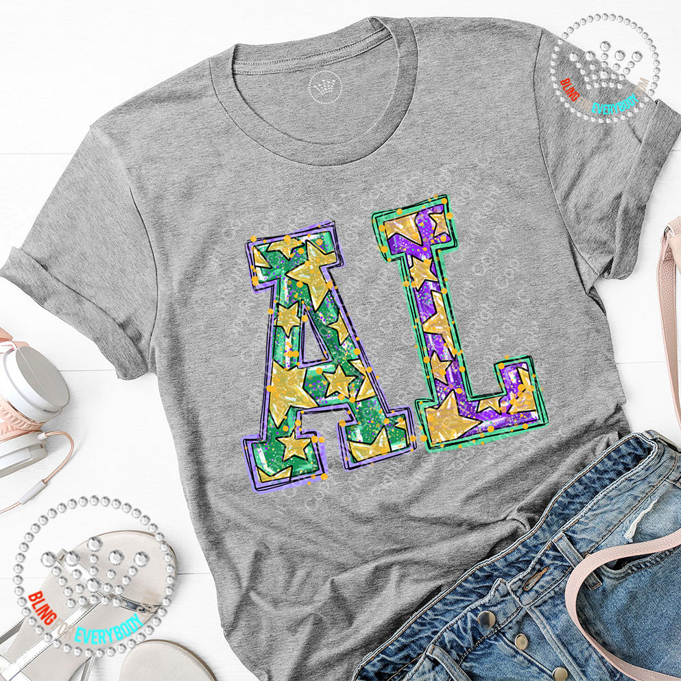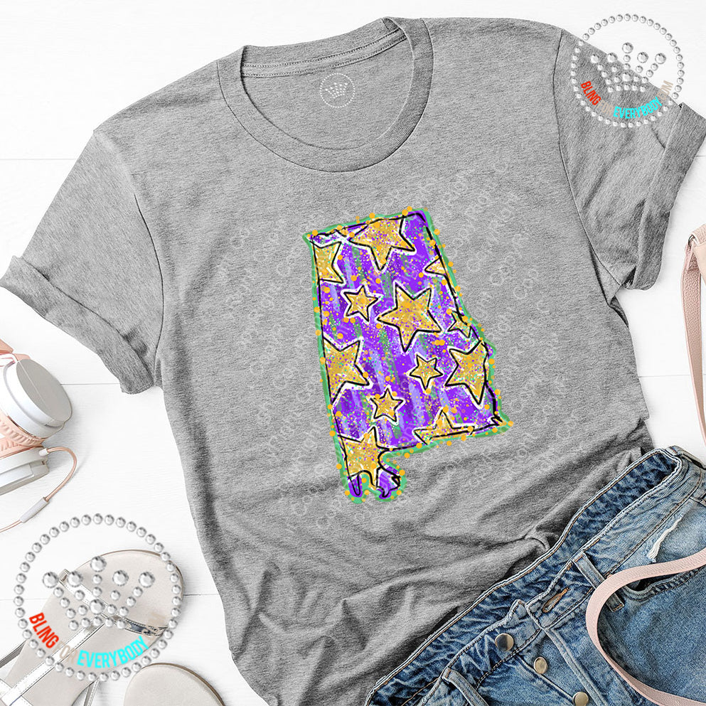 Mardi Gras Stars State Alabama Graphic Print Unisex Short Sleeve Tee #26109