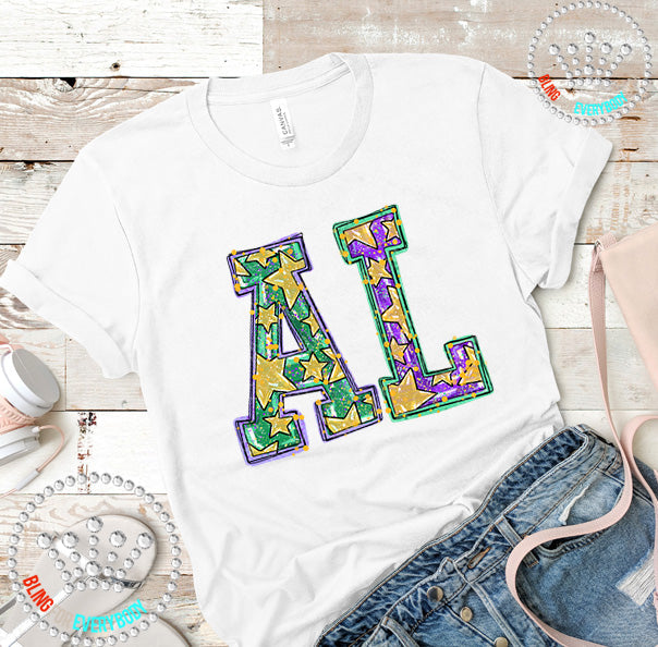 Mardi Gras Stars Alabama Graphic Print Unisex Short Sleeve Tee #26106