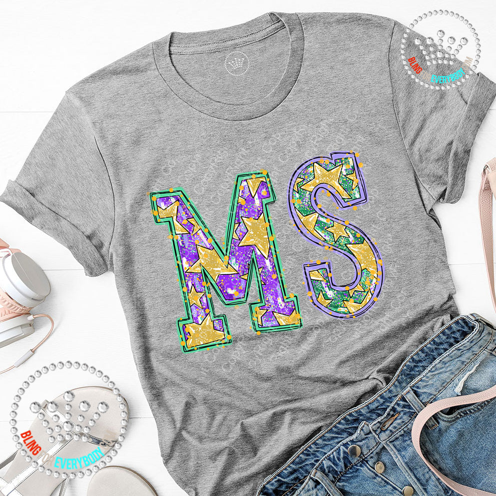 Mardi Gras Stars Mississippi Graphic Print Unisex Short Sleeve Tee #26108