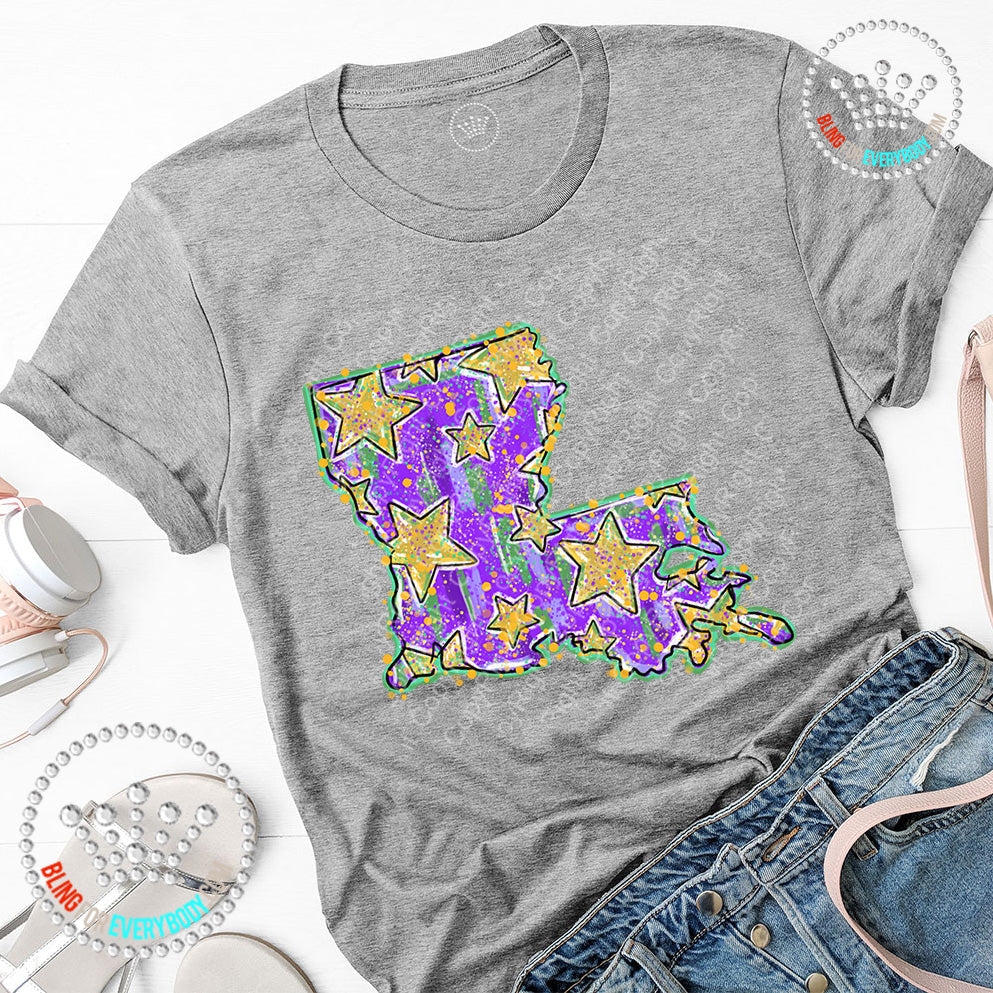 Mardi Gras Stars State Louisiana Graphic Print Unisex Short Sleeve Tee #26110
