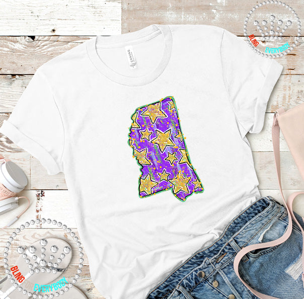 Mardi Gras Stars State Mississippi Graphic Print Unisex Short Sleeve Tee #26111