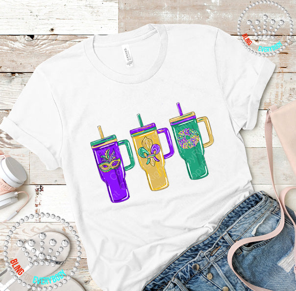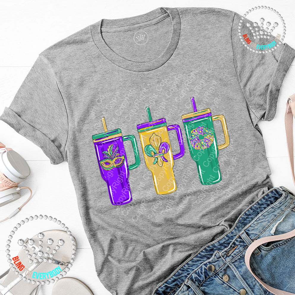 Mardi Gras Tumblers Mask Fleur King Cake Graphic Print Unisex Short Sleeve Tee #26112
