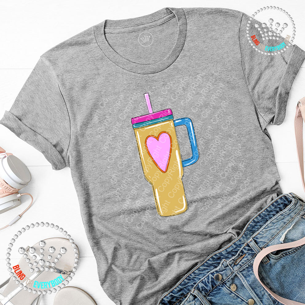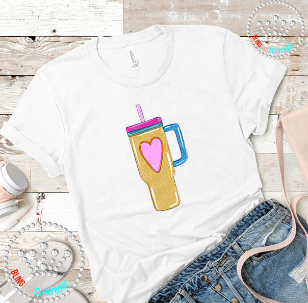 Tumbler Large Gold Heart Graphic Print Unisex Short Sleeve Tee #26117