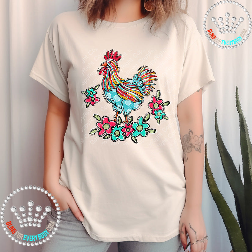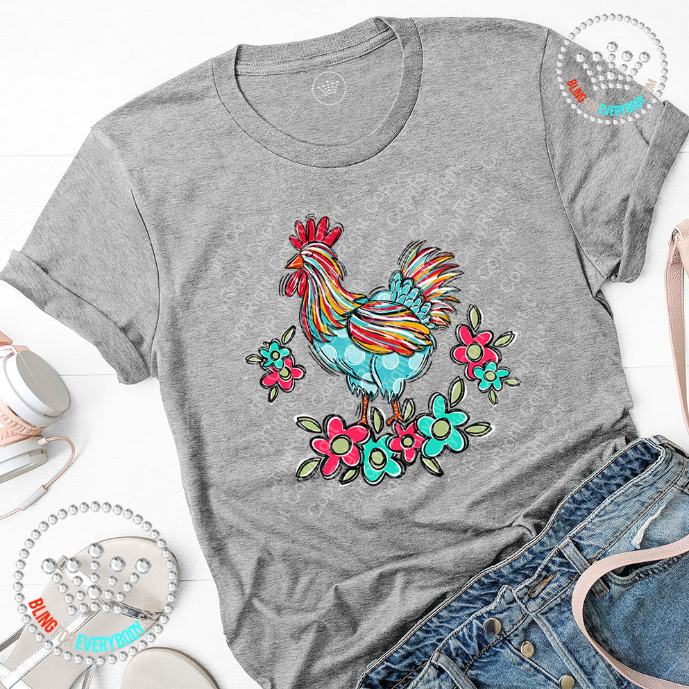 Chicken with Flowers DTF Transfer #25903