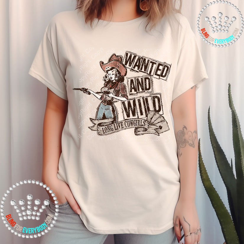 Wanted And Wild Western Cowgirl Graphic Print Unisex Short Sleeve Tee #25897