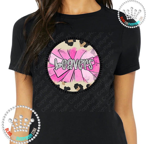 Beavers Pink Cheer Pom Round Graphic Print Unisex Short Sleeve Tee #28671