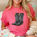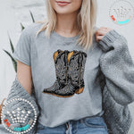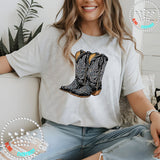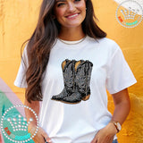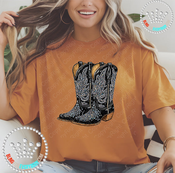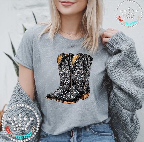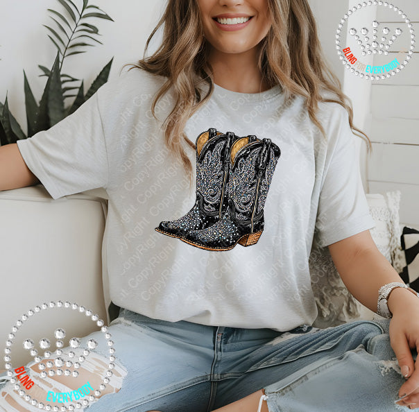 Black Boots Faux Bling Graphic Print Unisex Short Sleeve Tee #29922
