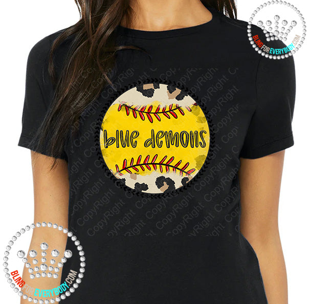 Blue Demons Softball Background Graphic Print Unisex Short Sleeve Tee #29561