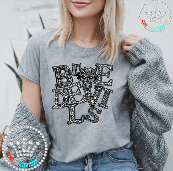 Blue Devils Faux Rhinestones Unisex Short Sleeve Tee #27491