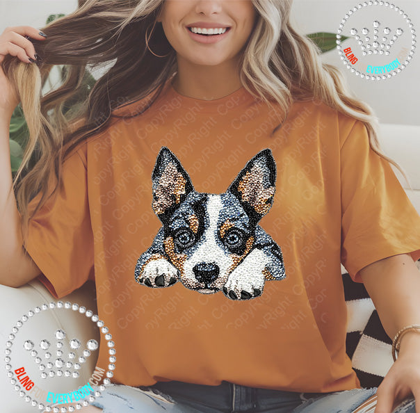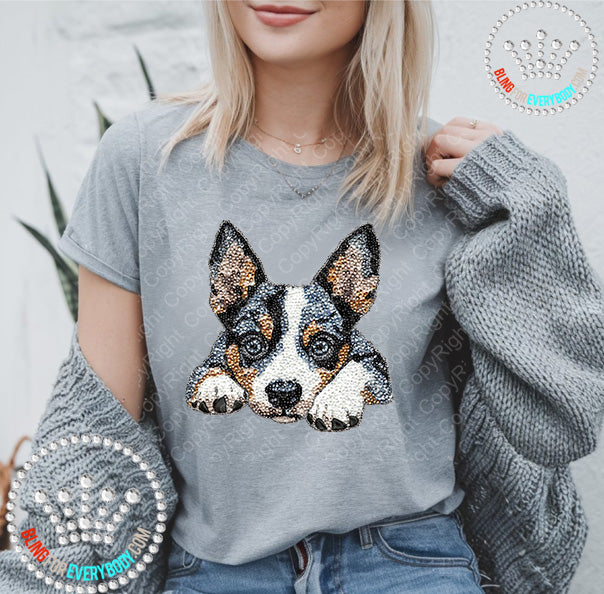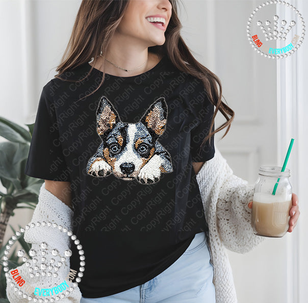 Blue Heeler Faux Bling Graphic Print Unisex Short Sleeve Tee #29925