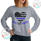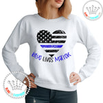 Blue Line Heart Blue Lives Matter Graphic Print Unisex Long Sleeve Tee #26100