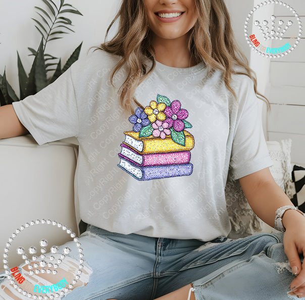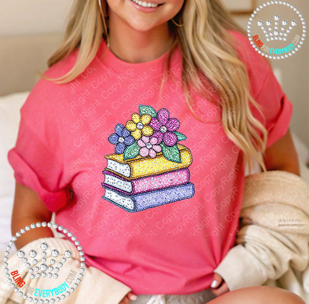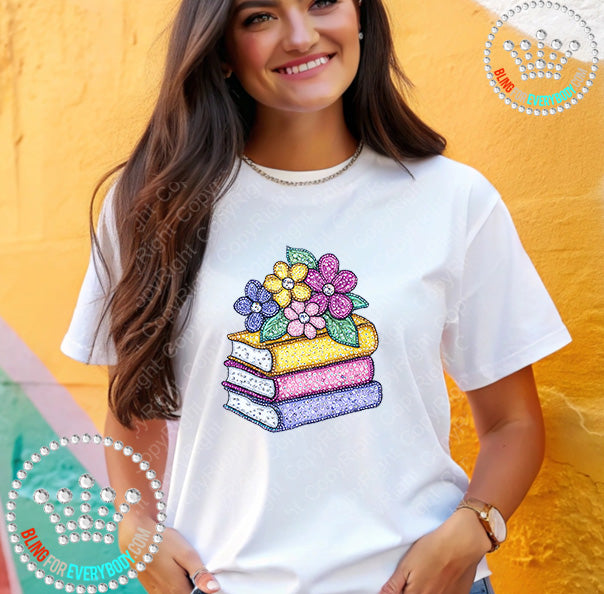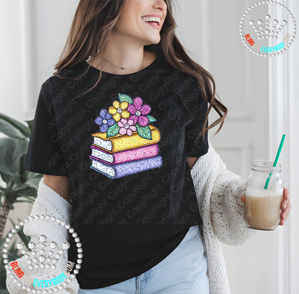 Books Faux Bling Graphic Print Unisex Short Sleeve Tee #29927