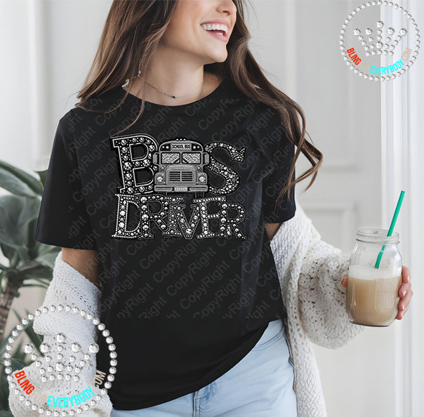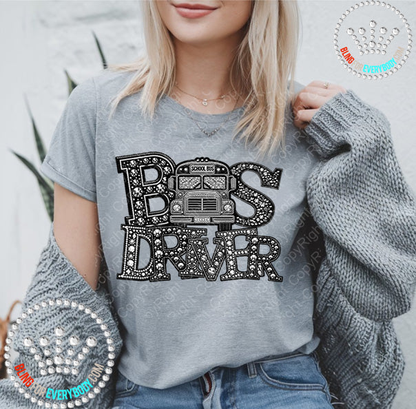 Bus Driver Faux Rhinestones Unisex Short Sleeve Tee #27641