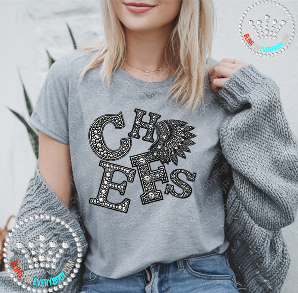 Chiefs Lightning Faux Rhinestones Unisex Short Sleeve Tee #27505