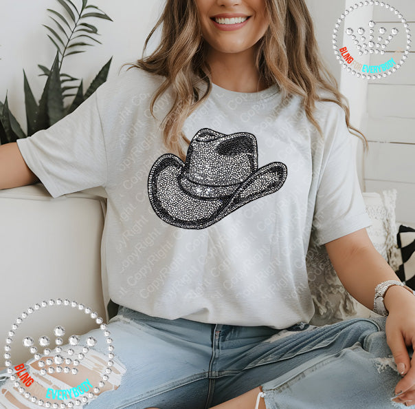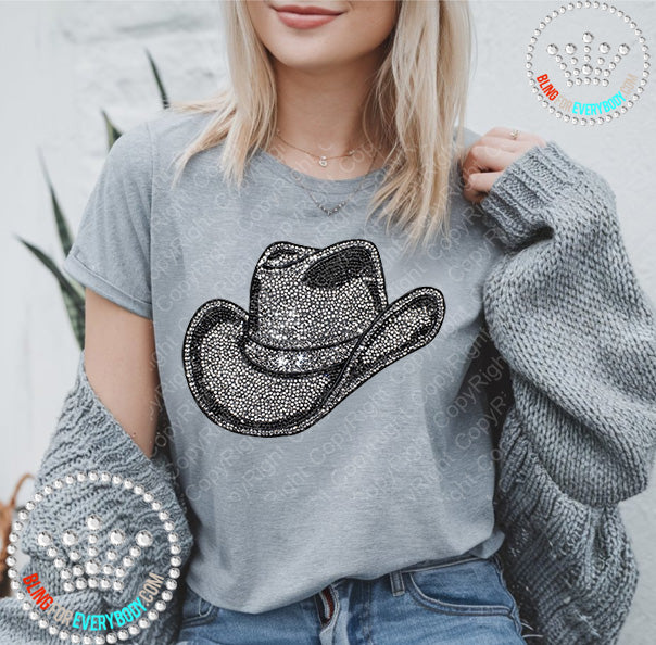 Cowboy Faux Bling Graphic Print Unisex Short Sleeve Tee #29943