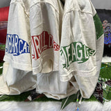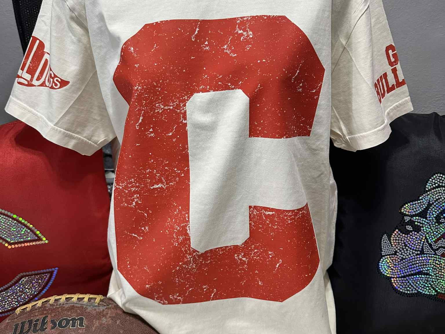 Oversized Distressed Letter on front.