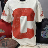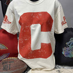 Giant Distressed Letter with Custom Sleeves Graphic Print Tee