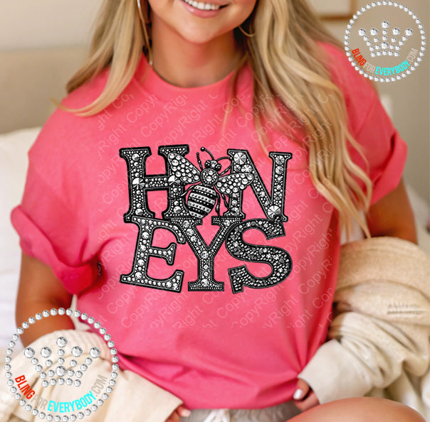 Honeys Faux Rhinestones Unisex Short Sleeve Tee #27525