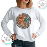 Indian Headdress Cheetah Leopard Graphic Print Unisex Long Sleeve Tee #26123