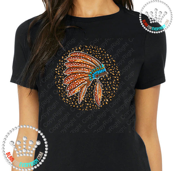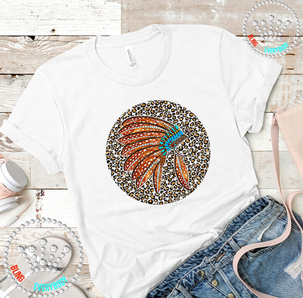 Indian Headdress Cheetah Leopard Graphic Print Unisex Short Sleeve Tee #26123
