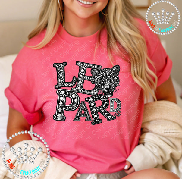Leopards Faux Rhinestones Unisex Short Sleeve Tee #27536