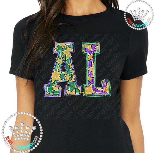 Mardi Gras Stars Alabama Graphic Print Unisex Short Sleeve Tee #26106