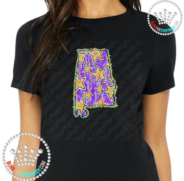 Mardi Gras Stars State Alabama Graphic Print Unisex Short Sleeve Tee #26109