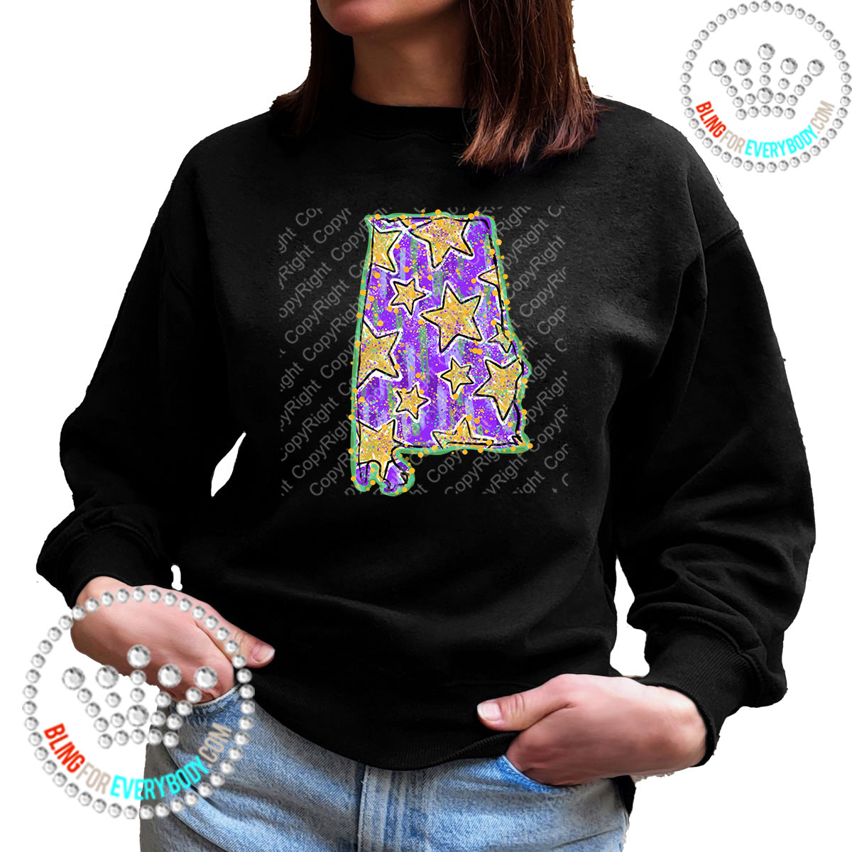 Mardi Gras Stars State Alabama Graphic Print Unisex Sweatshirt Hoodie #26109