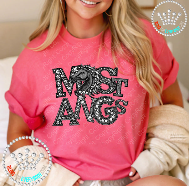 Mustangs Faux Rhinestones Unisex Short Sleeve Tee #27542
