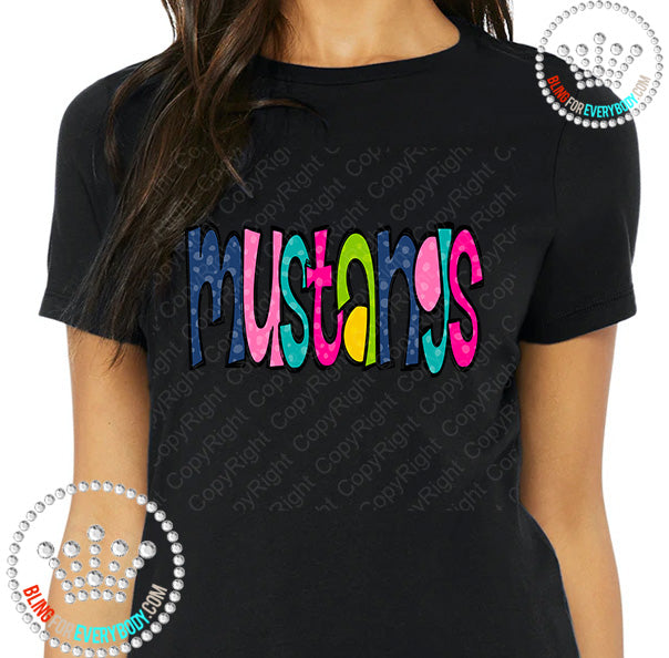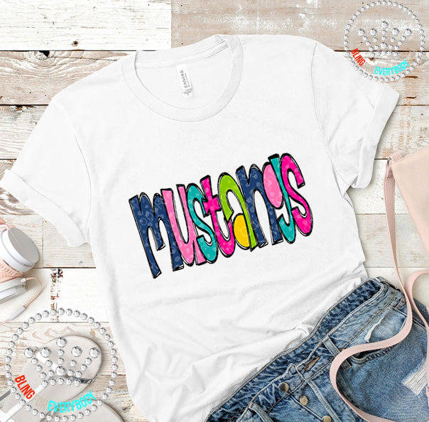 Mustangs Preppy Sketchy Graphic Print Unisex Short Sleeve Tee #26081