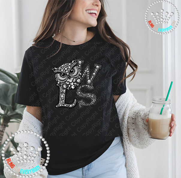 Owls Faux Rhinestones Unisex Short Sleeve Tee #27544