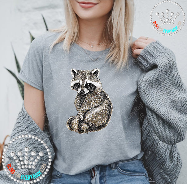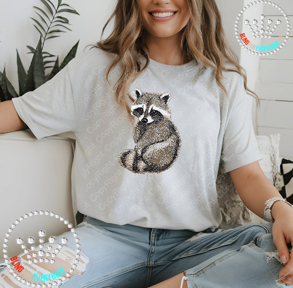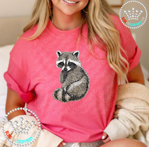 Raccoon Faux Bling Graphic Print Unisex Short Sleeve Tee #29990
