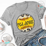 Red Devils Softball Background Graphic Print Unisex Short Sleeve Tee #29659