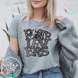 Full color graphic print professionally set on your choice of short sleeve Bella Canvas, Gildan Softstyle, or Gildan Comfort Color short sleeve tee.