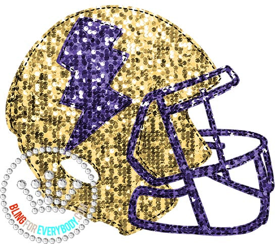 Sequin Helmet with Lightning Bolt Gold Purple DTF Transfer #25071