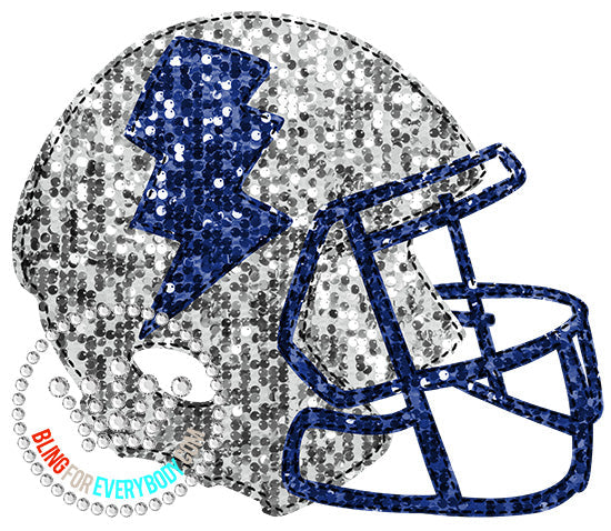 Sequin Helmet with Lightning Bolt Silver Navy DTF Transfer #25105