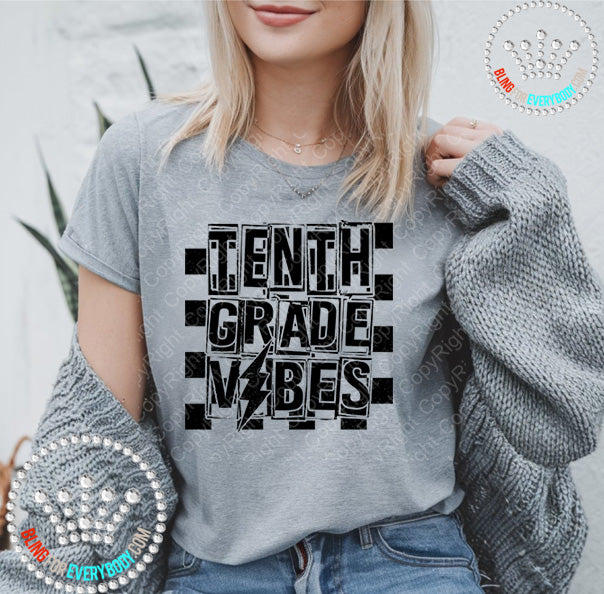 Tenth Grade Vibes 10 Black Graphic Print Unisex Short Sleeve Tee #27427