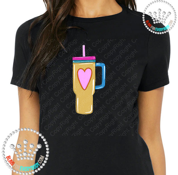 Tumbler Large Gold Heart Graphic Print Unisex Short Sleeve Tee #26117