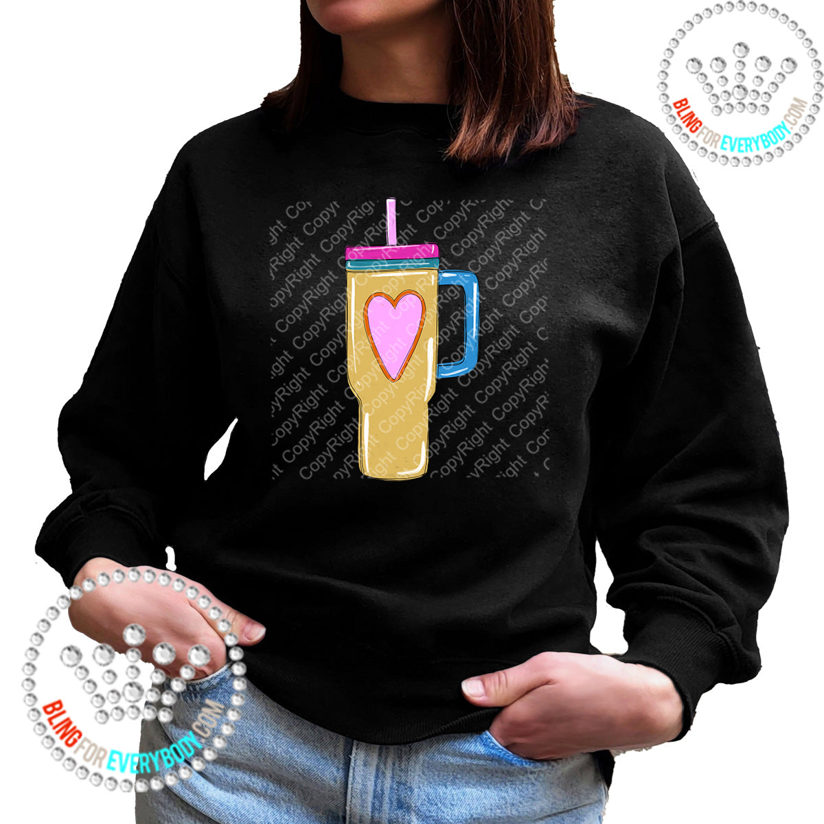 Tumbler Large Gold Heart Graphic Print Unisex Sweatshirt Hoodie #26117