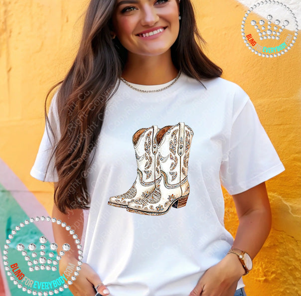 White Boots Faux Bling Graphic Print Unisex Short Sleeve Tee #30011
