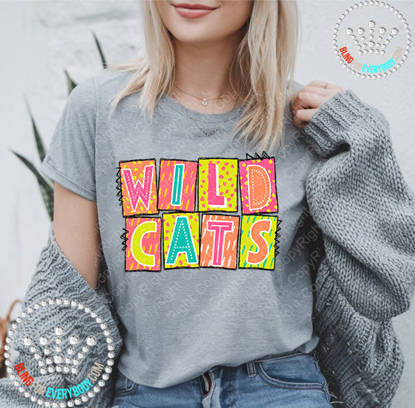 Wildcats Box Neon Unisex Short Sleeve Tee #27199